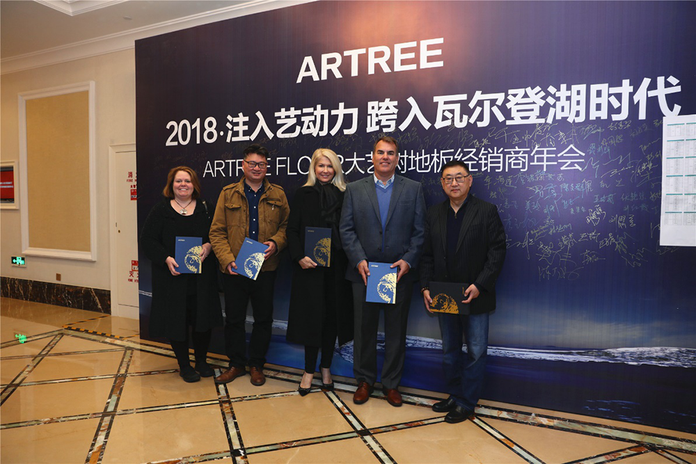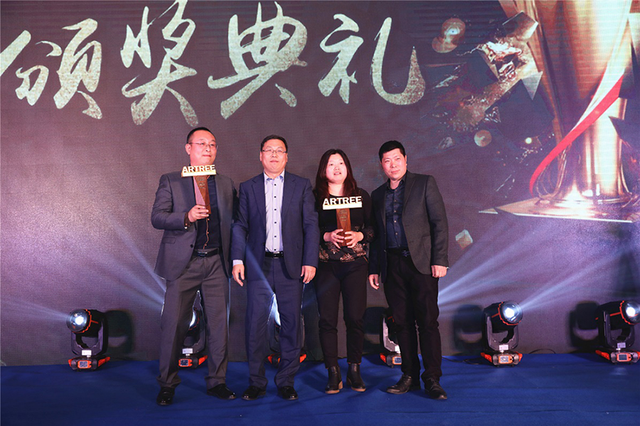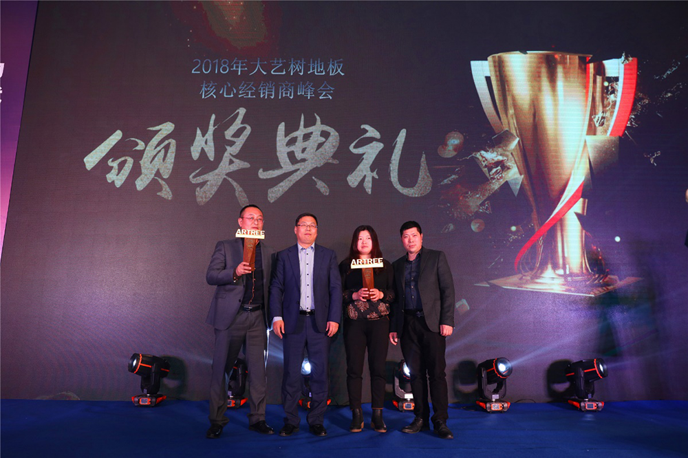 本次,大艺树也特别为2017年度的销售冠军和亚军准备了特别的“大奖”。由纯金打造的“ARTREE”字样在木制的奖杯之上熠熠生辉,意喻着大艺树的“金字招牌”,也激励着所有在场经销商2018年不断努力奋斗,再创更大的辉煌。