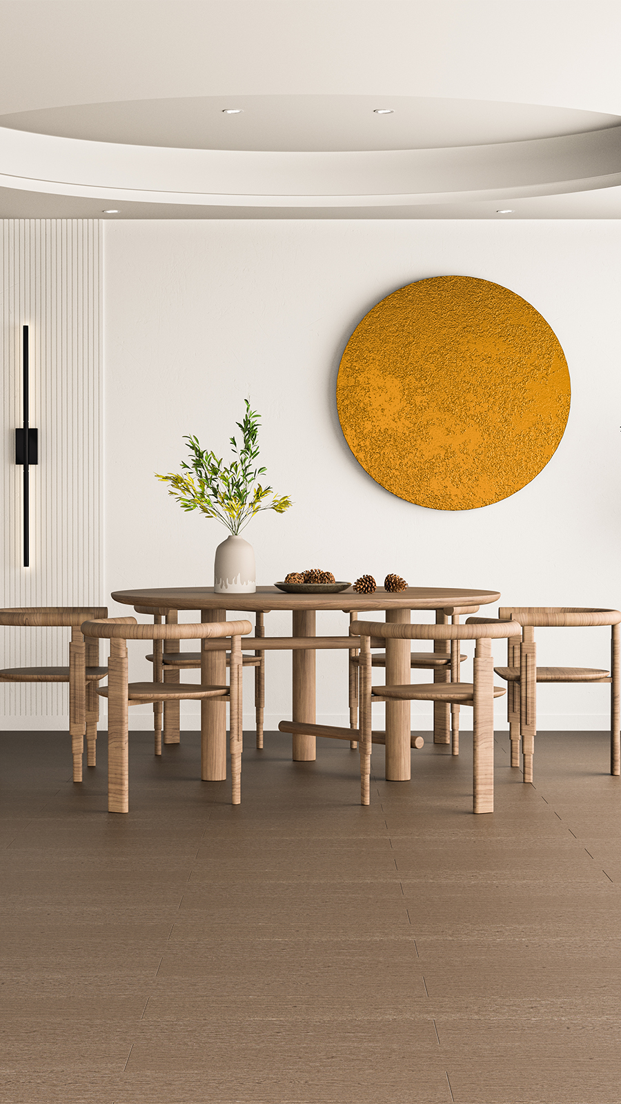 原木黄是树木最直接的颜色,淡雅的色彩与木之肌理碰撞,以质朴取代奢华,抓人眼球。在宁静致远的原木空间里,是一种自然而素净的原始美。