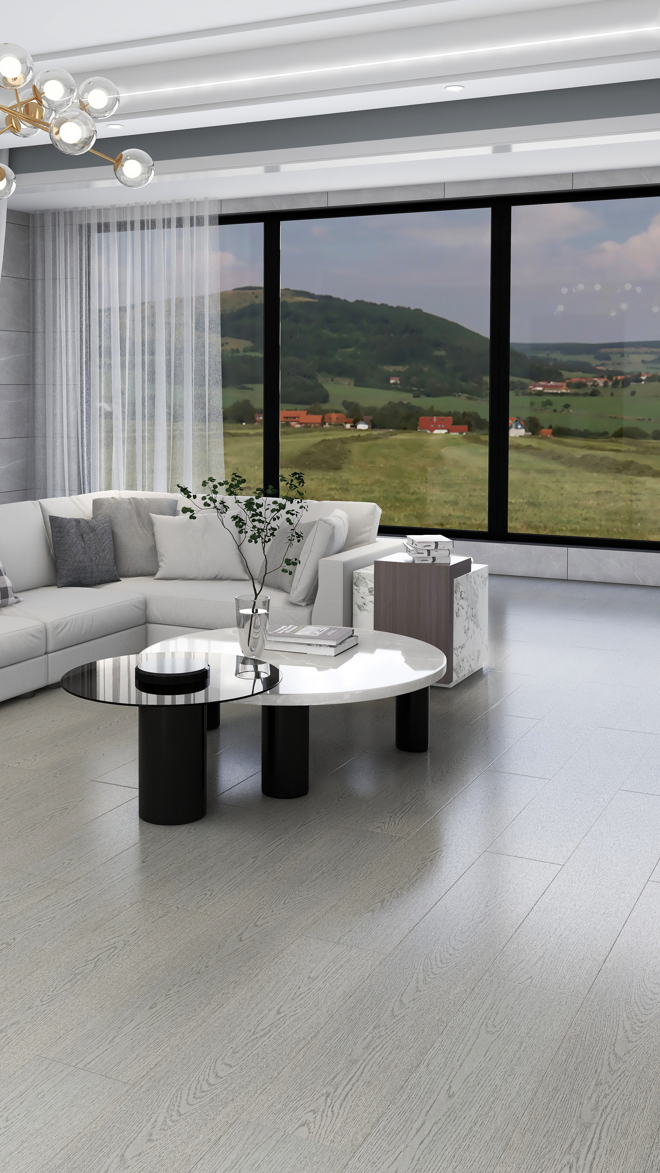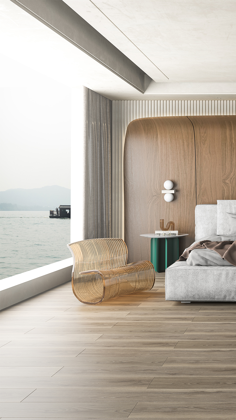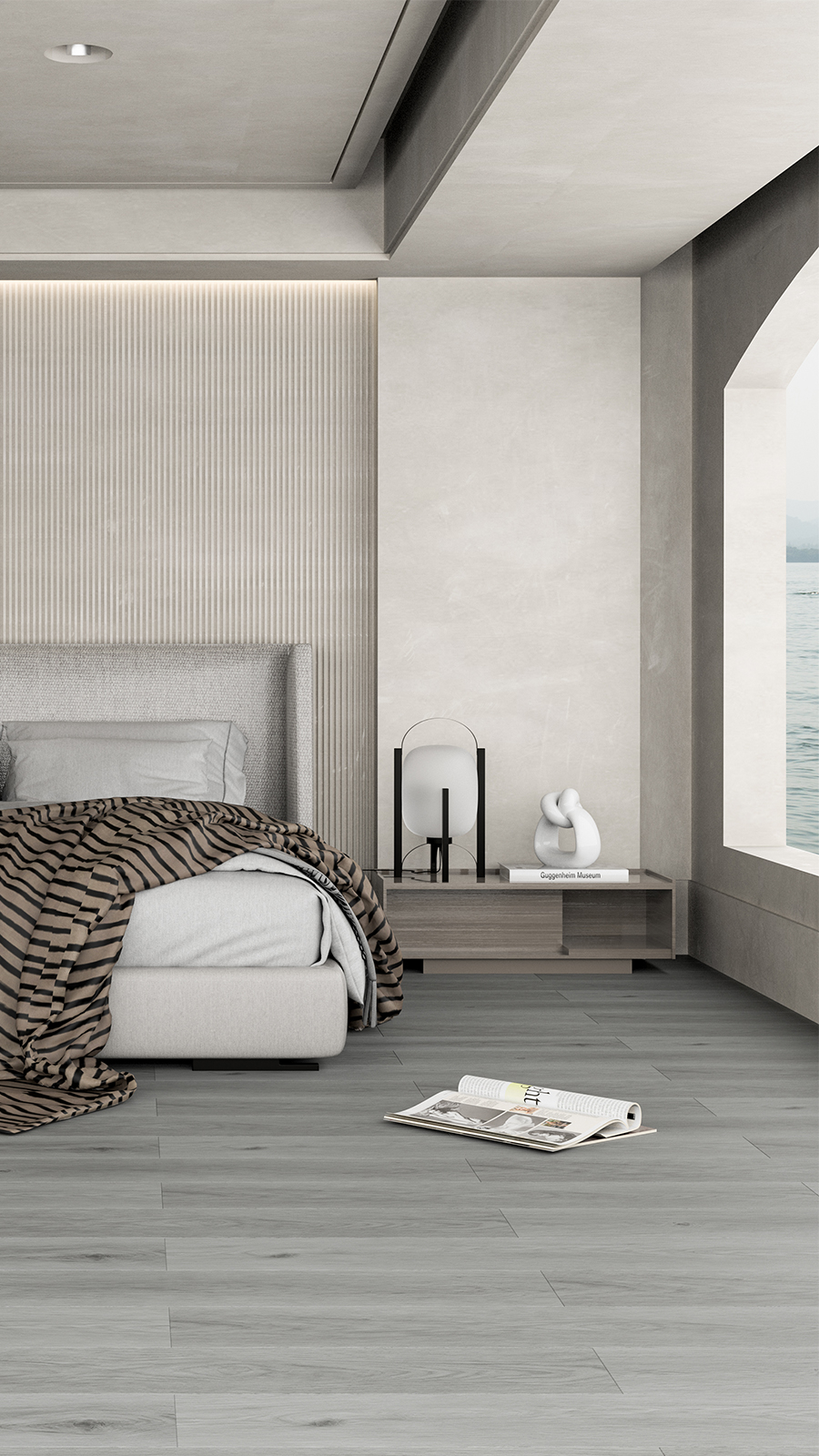 大艺树地板将湖光之色定格,用沉稳内敛的灰,构画温润质地的家居空间。