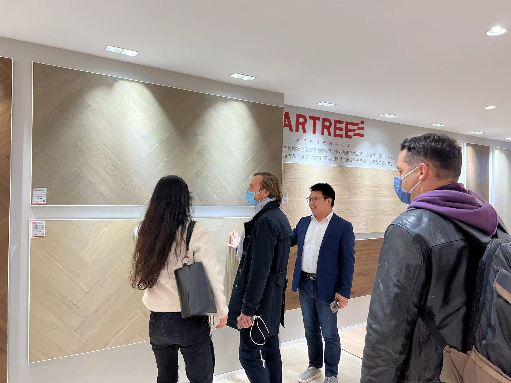 11月16日,France2驻中国记者站首席记者Arnauld MIGUET, 摄影师Gaël CARON, 制片人Charlie Wong 来到大艺树地板上海真北红星店,对负责人张永江先生进行了以法国橡木为主题的专访。
