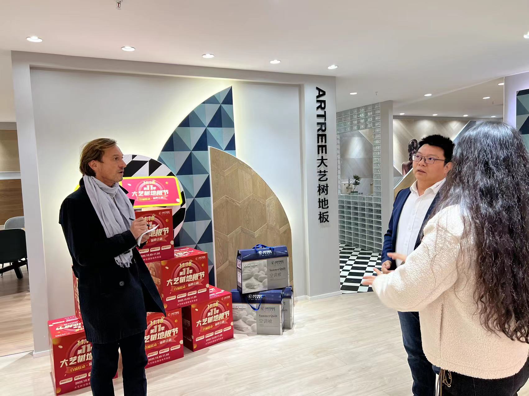 France2驻中国记者站首席记者Arnauld MIGUET, 摄影师Gaël CARON, 制片人Charlie Wong 来到大艺树地板上海真北红星店,对负责人张永江先生进行了以法国橡木为主题的专访。