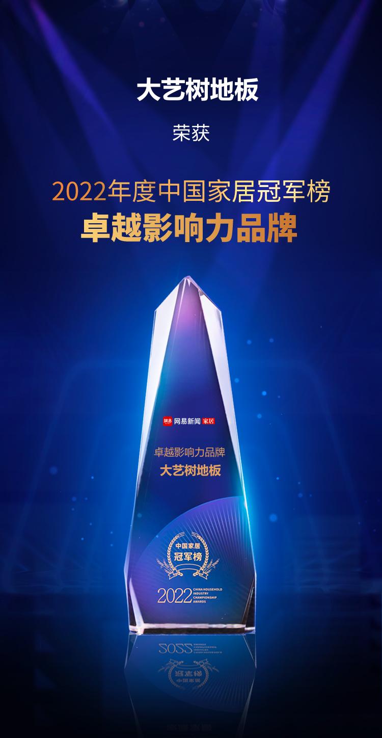 “向好生活提案——2022网易中国家居冠军榜颁奖盛典”线上隆重举行,大艺树获【卓越影响力品牌】荣誉。