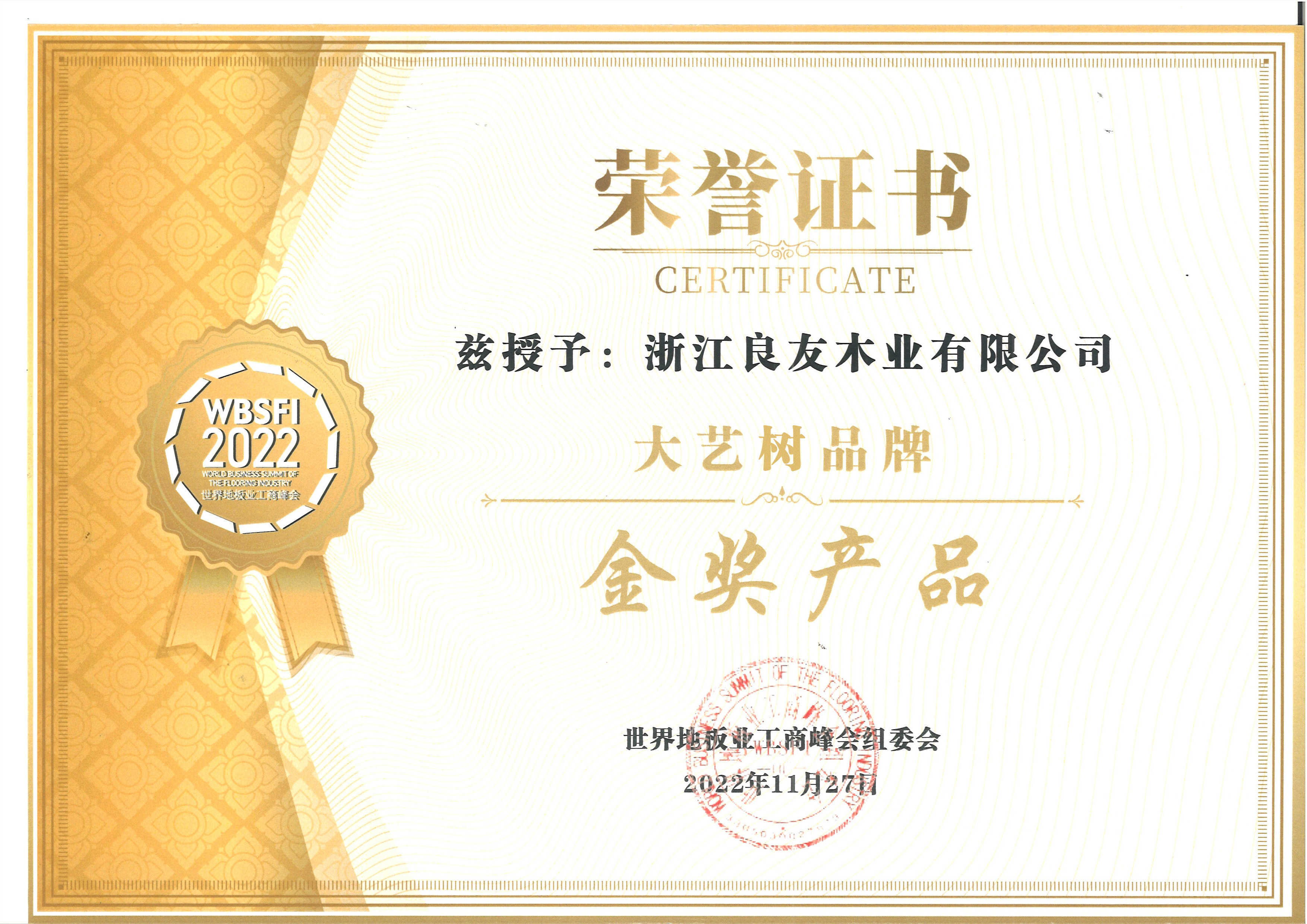“2022世界地板业工商峰会——中国地板新时代发展大会”隆重举行,大艺树坚持“优质原材、环保先行”的策略,获得「金奖产品」的荣誉,母公司浙江良友木业董事长沈小红先生获「中国地板新时代发展领军人物」称号。
