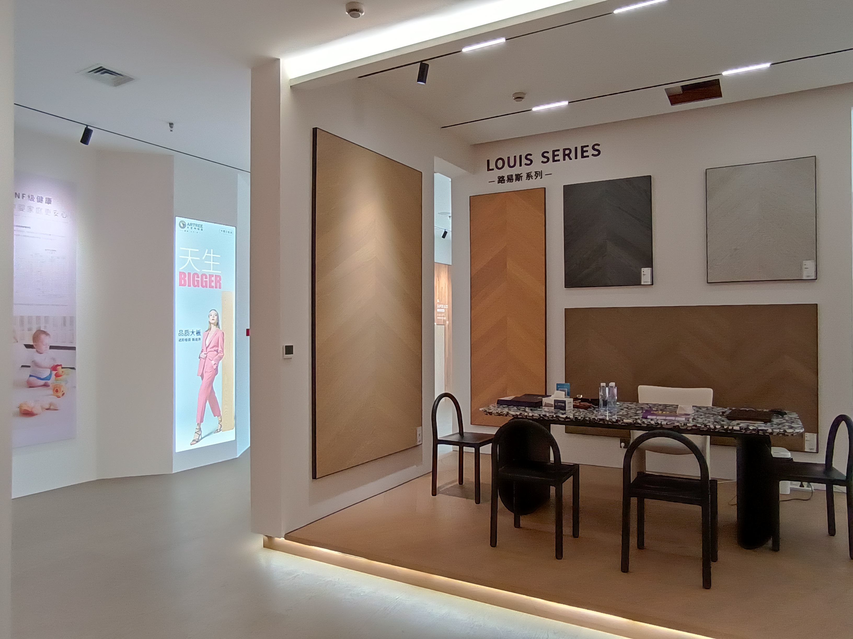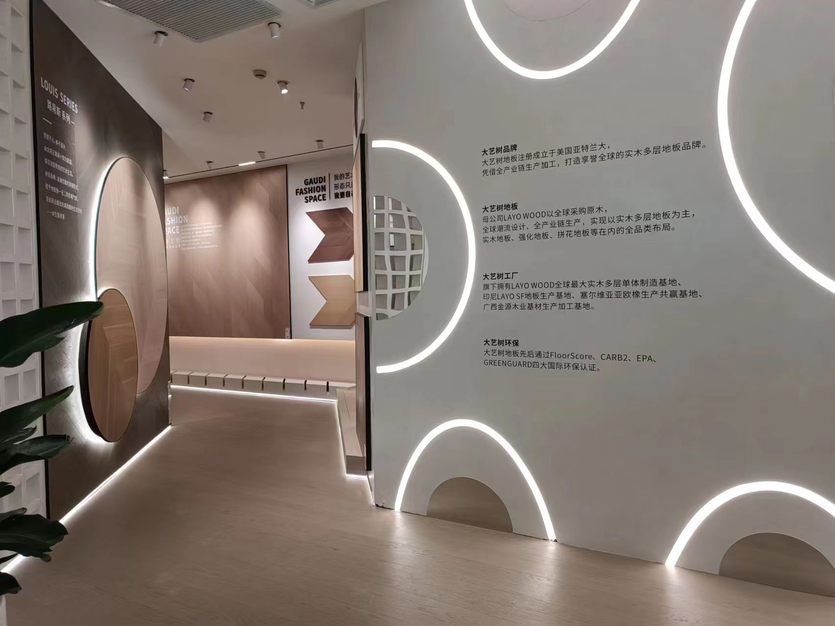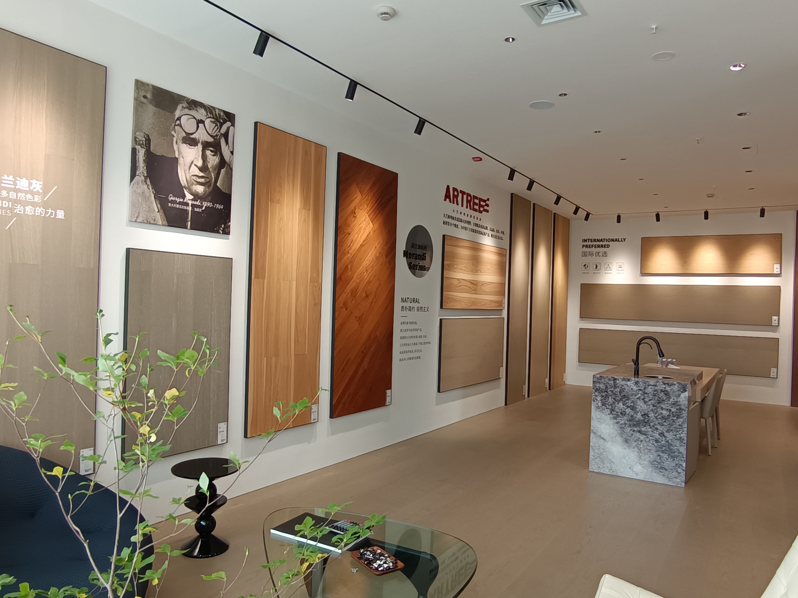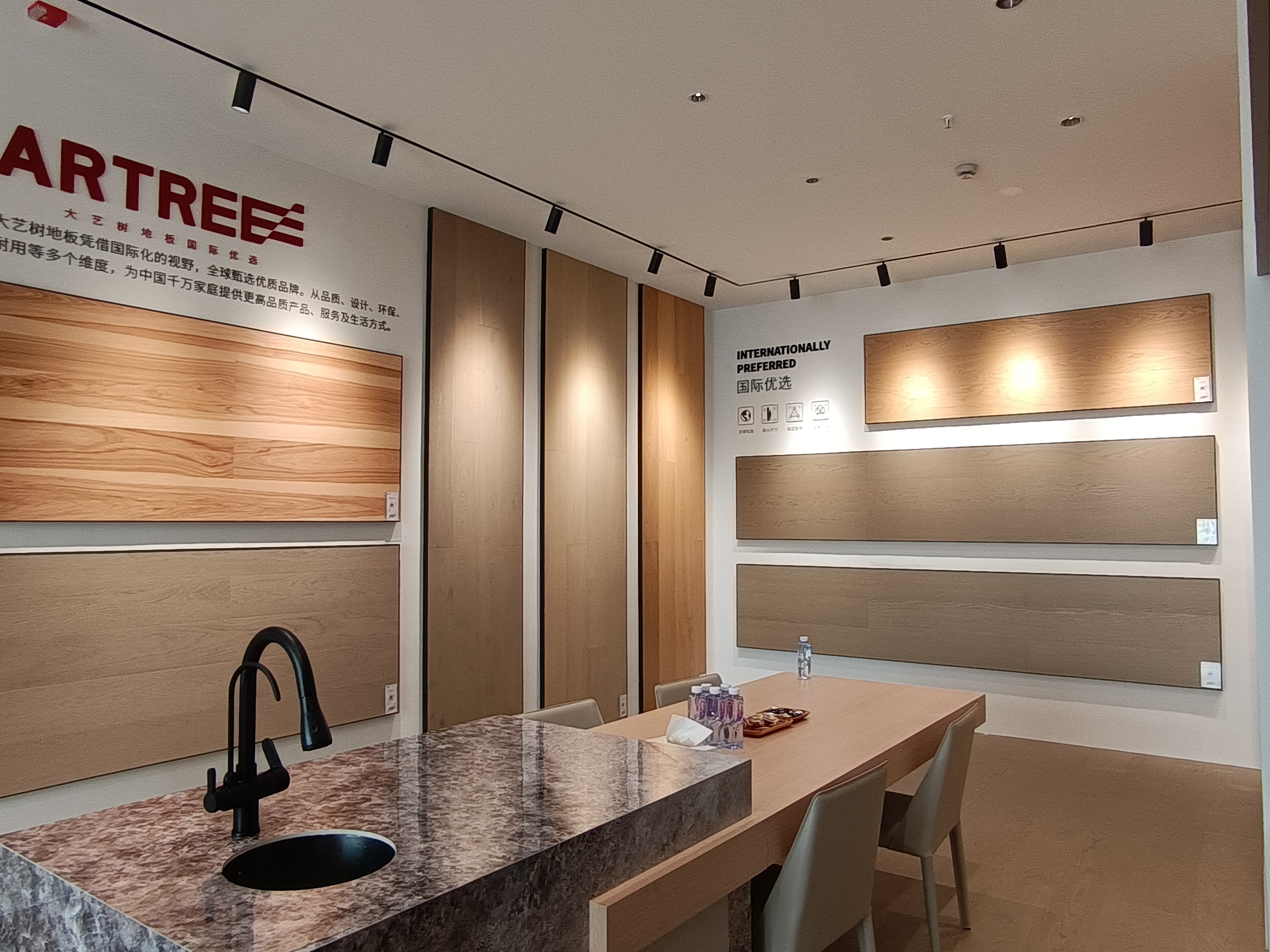 2019年初,衢州大艺树首家门店正式营业,面积220m²,充满沉浸式体验感的店铺设计直接把品牌格调和高度拉满。门店通过地板传递美学生活方式,又凭借品牌实力,短短三年时间在当地迅速蹿红,一跃成为知名装饰公司竞相合作的地板品牌,至今还是当地前三装饰公司的长期合作伙伴。