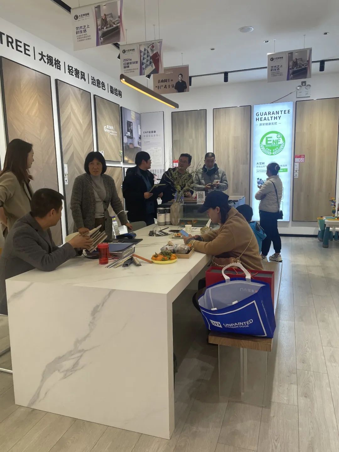 昆明大艺树的一把手——平丽华,凭借着自身的经商天赋和精明强干,将手上的地板生意做得风生水起。应对行业竞争的压力,她雷厉风行,开年伊始,首先召集团队召开了2023年门店经营计划会议,详细规划了门店一年的发展方向;随后大刀阔斧地开始启动渠道合作工作,并积极开展门店促销活动,以活动形式拉近与消费者的距离,主动迎接市场挑战,顺应消费变化,以独一份的【大招】决胜千里。