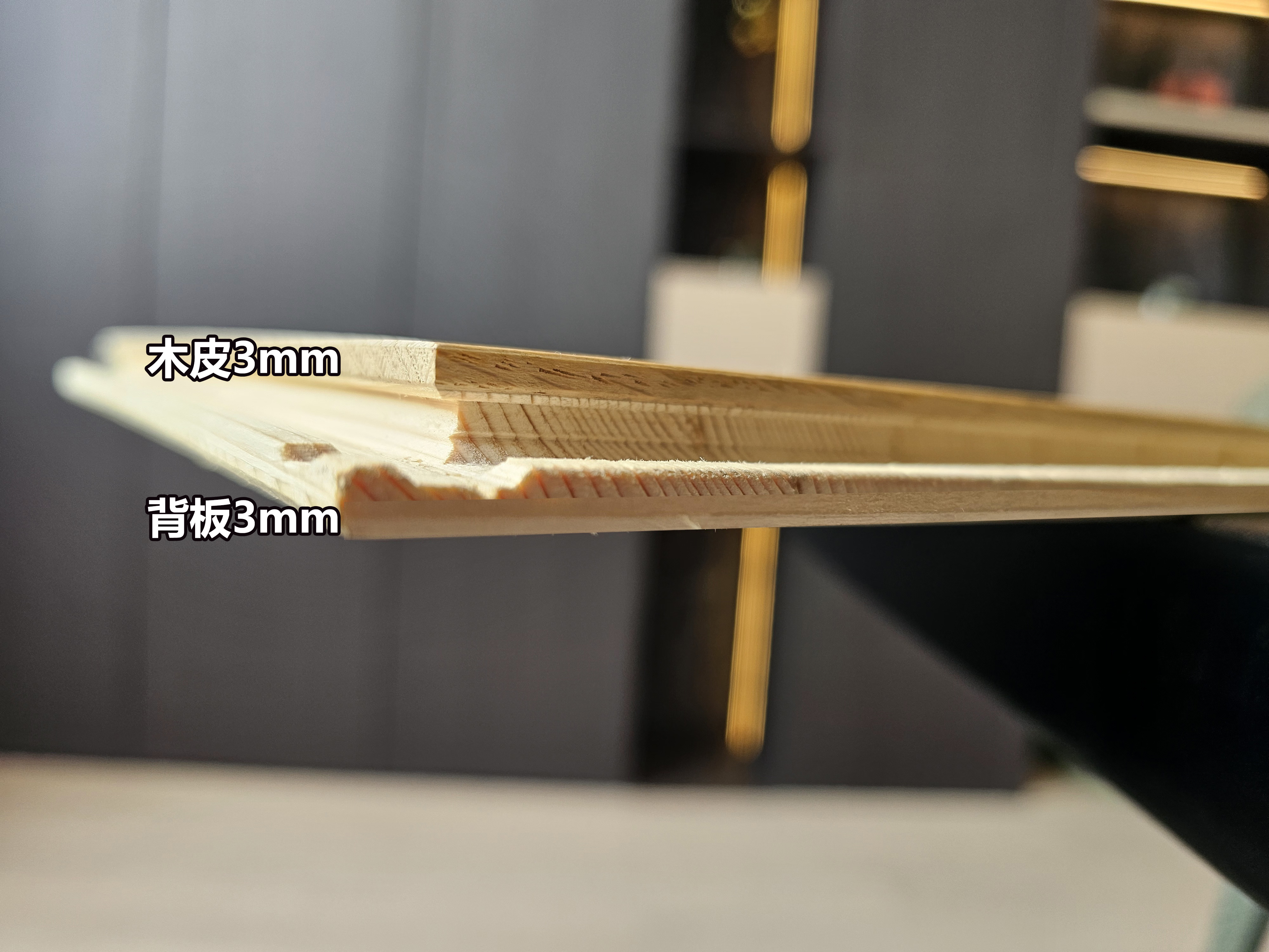 木皮薄或者不足尺、一些作坊类小工厂生产的三层实木地板在表面工艺处理上会有一定问题,比如只能做平面、浅拉丝效果,失去了选择厚表皮三层实木地板的意义。