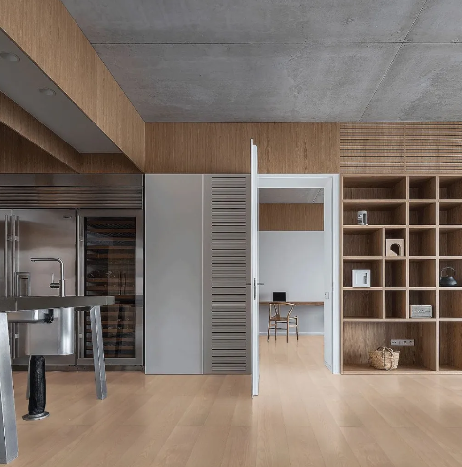厚木皮还有非常重要一个优点,如果选择一些大倒角、拉丝仿古等质感比较强的表面处理工艺,厚木皮能做出更自然、更立体、更持久的效果。