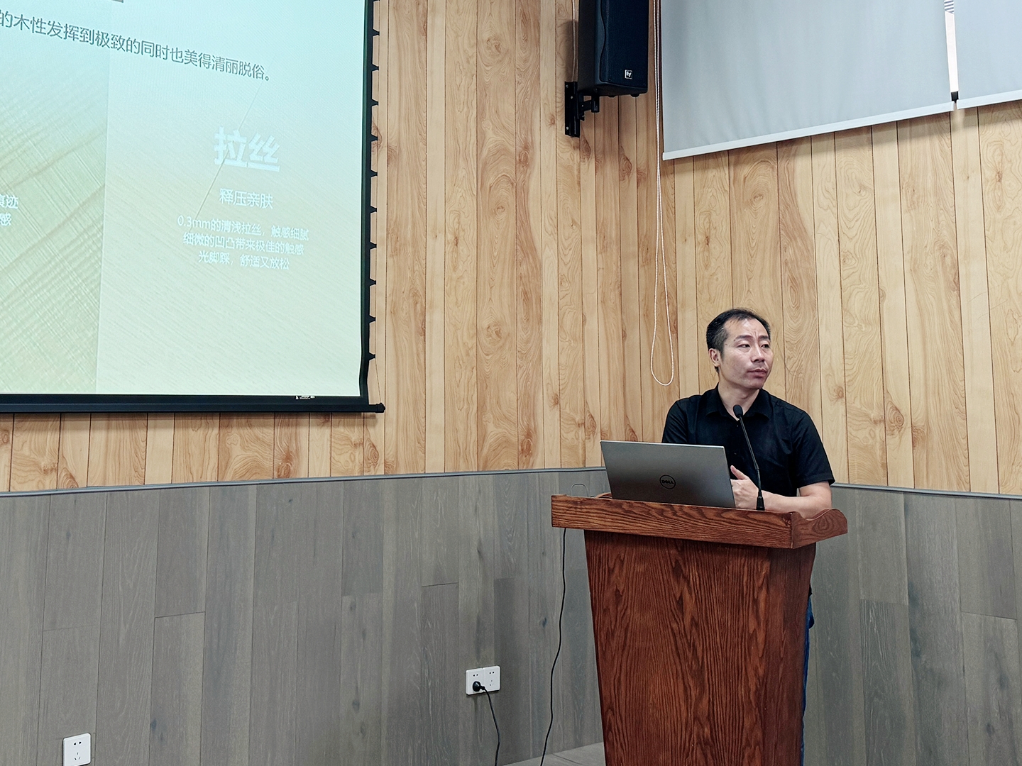 嘉兴良友大艺树产品总监肖金林从产品种类、工艺特点到市场前景做了深入浅出的讲解。他强调,大艺树产品的核心竞争力在于其卓越的品质、独特的设计以及对环保理念的坚持,每个系列的产品都有其独特的细节设计和性能优势,在市场上广受好评。婴幼友好型系列地板,在儿童安全级产品认证的加持下,深受宝宝家庭青睐;阿尔卑斯抗菌系列则以其耐磨性、抗菌特性,成为当下年轻人的理想选择;瓦尔登湖三层地板以高质量、高颜值、高性价比成为十大畅销品之一...近60分钟的产品讲解不仅让经销商们全面了解了大艺树的产品结构及优势,也帮助经销商更好地掌握了未来市场产品推广的策略和方向。
