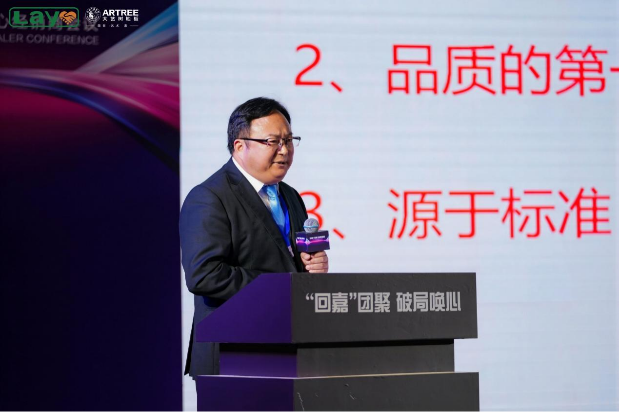 以质量赢信任,以效率创未来。浙江良友木业有限公司生产事业部总经理/大艺树地板有限公司副总经理袁福堂先生以此为主题,从品质、交期、成本、研发、服务五个方面为经销商树立了信心。