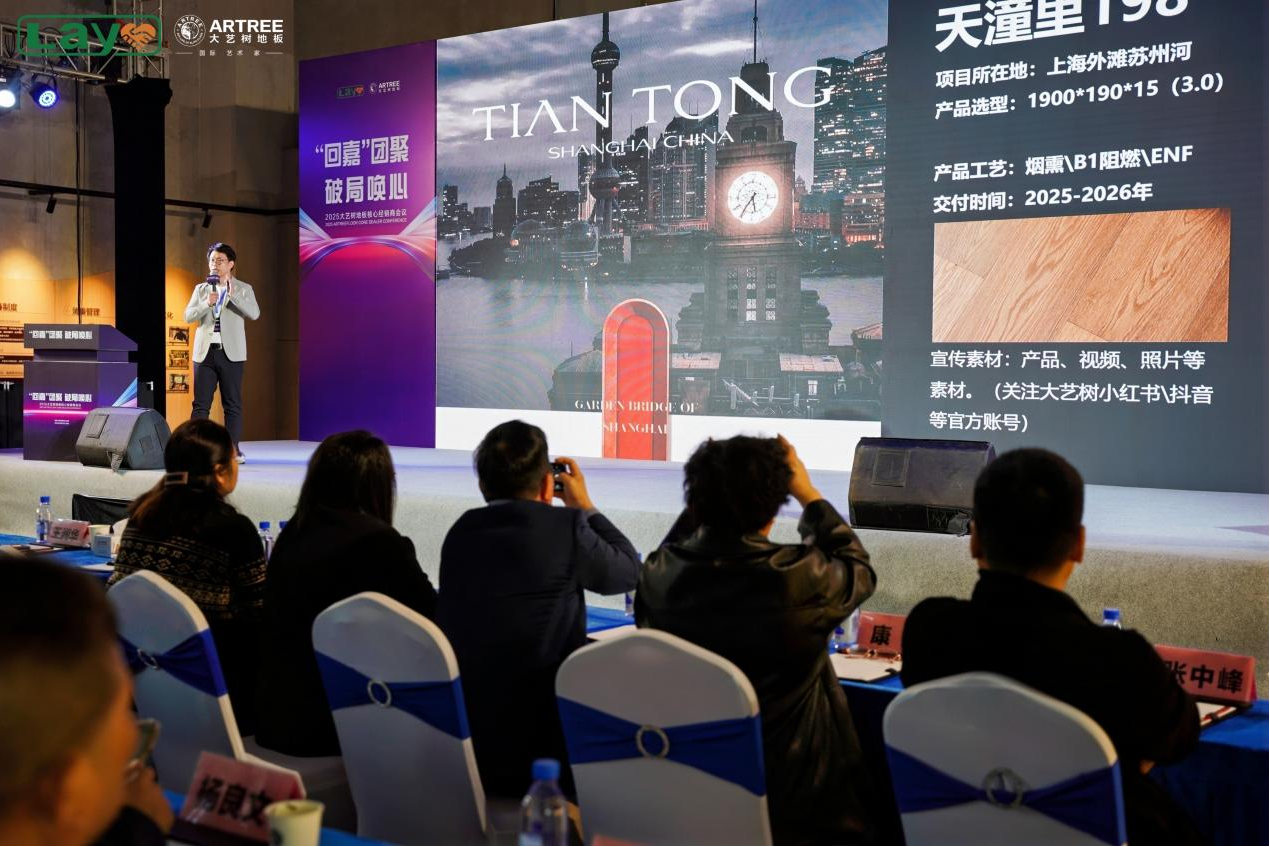 大艺树地板有限公司副总经理滕井号先生带来了品牌推广战略及高端案例分享。2025年,大艺树将持续搭建并升级全媒体平台推广网络,以高端工程项目(上海壹号院、天潼里198、上实仰山、听海、鹏瑞三龙湾等)为引擎,赋能品牌传播;并与知名开发商保持战略合作,与设计师联合共建产品,入驻亮相更多地产高端项目,全面提升品牌竞争力。