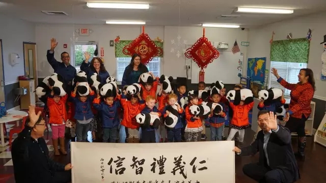 大艺树为大家精心准备的新年礼物受到了热烈的欢迎,苏州刺绣和宜兴紫砂壶让老师们对中国传统文化艺术赞不绝口 。取名为“阿仁、阿义、阿礼、阿智、阿信”的玩具熊猫更是让小朋友们记住了中国儒家文化中的“仁义礼智信”。