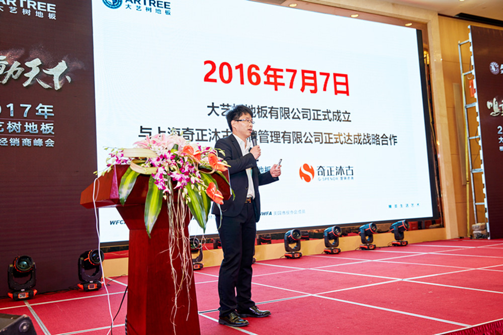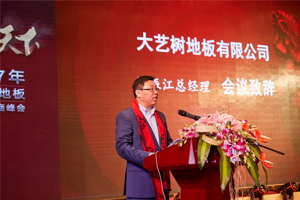 会议由大艺树地板总经理刘振江发表致辞。他指出,2016年,是大艺树地板的起势之年,我们寻找到了属于自己的品牌之路;开启了行业国际化的新纪元;收获了“十大品牌“、”年度环保健康品牌“、“年度感性力设计品牌”等诸多大奖。