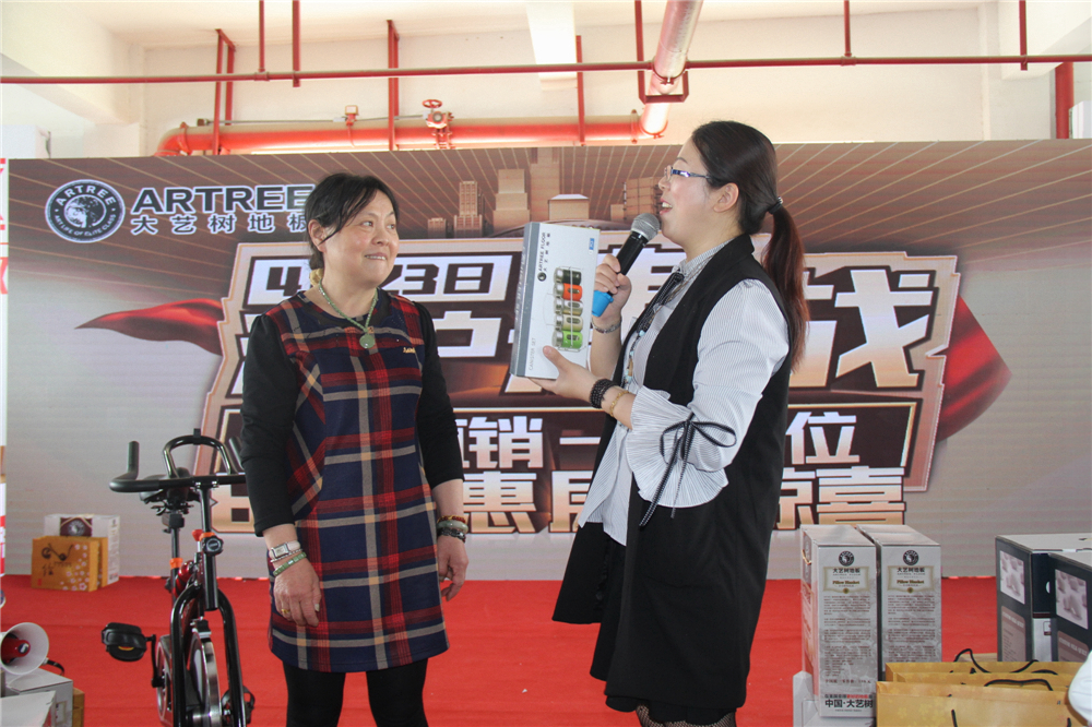 由实木多层、实木到强化,大艺树全系列产品皆参与了本次促销。展厅内人头攒动,持续高涨的热情让场面异常火爆,下单处、领奖处自始至终都排着长队。