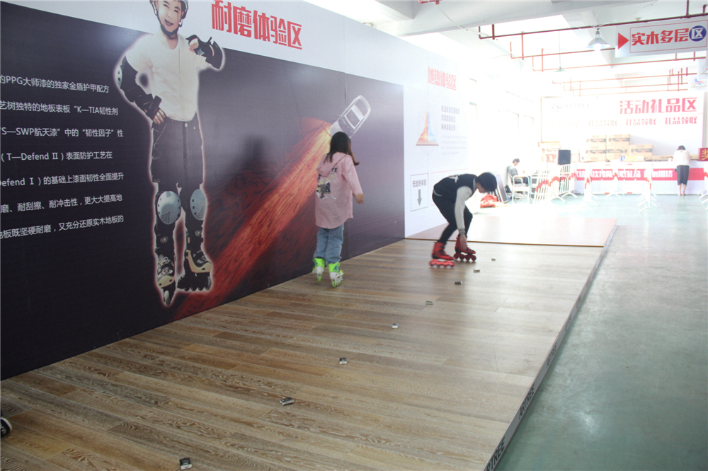 展厅内也分别划分了耐磨体验区、地热测试区及儿童地板体验区。