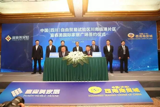 4月10日,在中共泸州市委书记蒋辅义,市委副书记、市长刘强等泸州市委、市政府领导的共同见证下,随着成都富森美家居股份有限公司董事总经理刘义与四川川南大市场有限公司总裁卢朝寿在合作协议上落笔签约,富森美第一个跨区域连锁化管理项目——富森美国际家居广场正式落户中国(四川)自由贸易试验区川南临港片区,标志着富森美家居将全面推进对外扩张步伐。