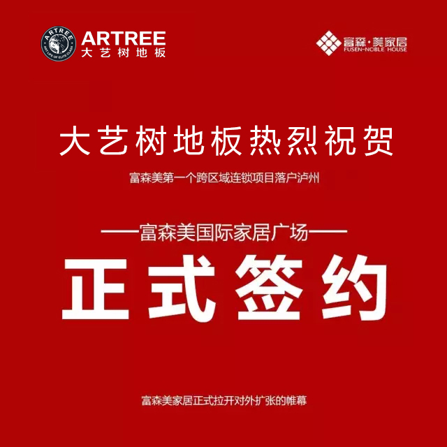 大艺树地板祝贺富森美家居首个跨区域连锁项目落户泸州!大艺树地板一直以来与富森美家居在品牌、在战略上有着深度合作。在此,大艺树地板第一时间为富森美家居送上热烈的祝贺,衷心祝愿富森美越来越好!
