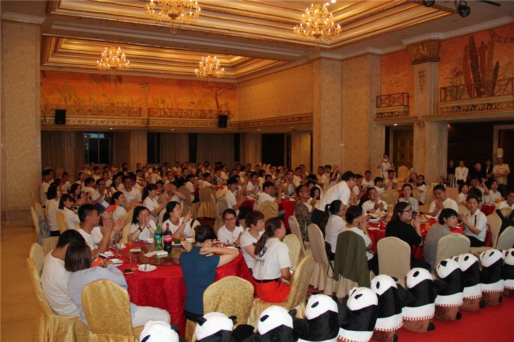 晚上,学员们迎来了本次”功夫熊猫”训练营的最终汇报演出及团队表彰环节。浙江良友木业有限公司副总经理、大艺树地板总经理刘振江先生、浙江良友木业有限公司副总经理葛晓海先生也作为嘉宾出席,与所有大艺树家人们共进晚宴,举杯同庆。