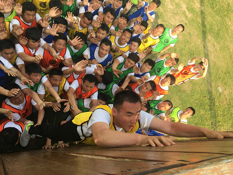 一双双高高举起保护的双手,一个个坚实托举的肩膀、此起彼伏的加油声……大艺树的精英们在挑战中迸发出了强大的团队力量,最终以16分41秒成功翻越108人的优异成绩圆满完成了任务。当最后一名队员顺利登顶的时候,“集体”“团队”“协作”“坚持”这些观念也真正的深入到了每一个人的心中。