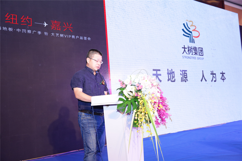 在观赏了一段瓦尔登湖系列的产品专题宣传片后,嘉兴品鉴会在热烈的气氛中正式开始了。大艺树地板副总经理、营销总监杨大蔚首先上台代表大艺树发表了欢迎词,并为在场的所有嘉宾介绍了大艺树品牌的发展历程,及本次推广季的目的与意义。