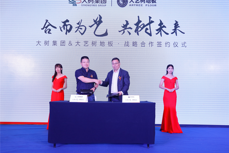 在本次推广季嘉兴站中还有一个备受瞩目的重磅环节: 浙江大树集团与大艺树地板有限公司的战略合作签约仪式。为此,现场也特别邀请了浙江大树集团董事长张玮先生发表了合作宣言,并在全场嘉宾的见证下,与大艺树地板有限公司总经理刘振江先生共同签订了战略合作协议。