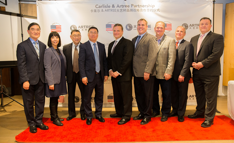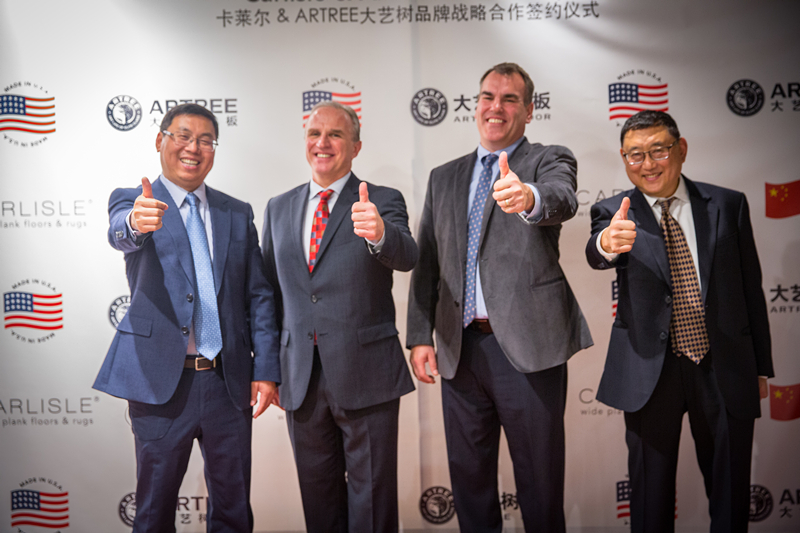 今年一月初,刘振江总经理亲赴美国,与顶级地板品牌卡莱尔(Carlisle)签署战略合作协议,开启大艺树全新的国际化布局。双方将共享设计资源,并携手推出"大艺树-卡莱尔"豪华大宽板系列,用更高端的产品,迎合国内消费升级的趋势;建立从研发,设计,生产到售后的全方位国际化管理体系。