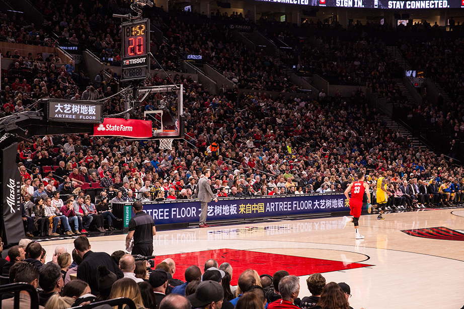 北京时间2018年12月30日11:00,NBA常规赛勇士VS开拓者在美国波特兰摩达中心球馆(Moda Center)火热开战。大艺树地板代表中国品牌首次亮相比赛现场,与激情四溢的球迷融为一体,见证两队的精彩交锋!