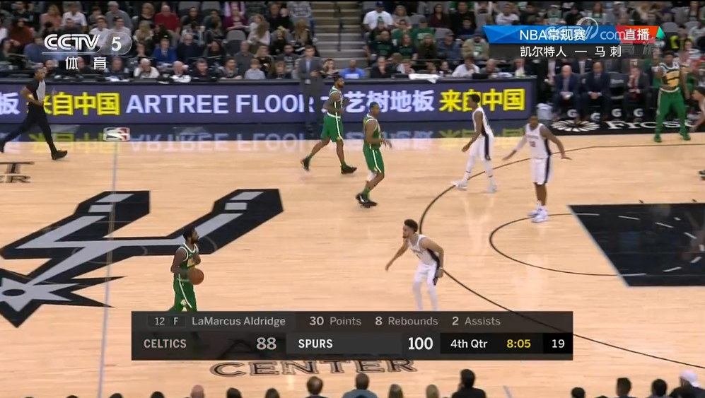 北京时间2019年1月1日8:00,NBA常规赛马刺VS凯尔特人在美国圣安东尼奥AT&T中心球馆(AT&T Center)开赛。继30日首度亮相后,大艺树地板再度亮相本次"新年大战"现场,以来自中国的名义,与现场的球迷一起呐喊助威!