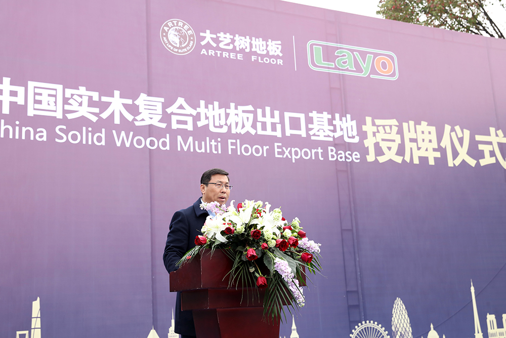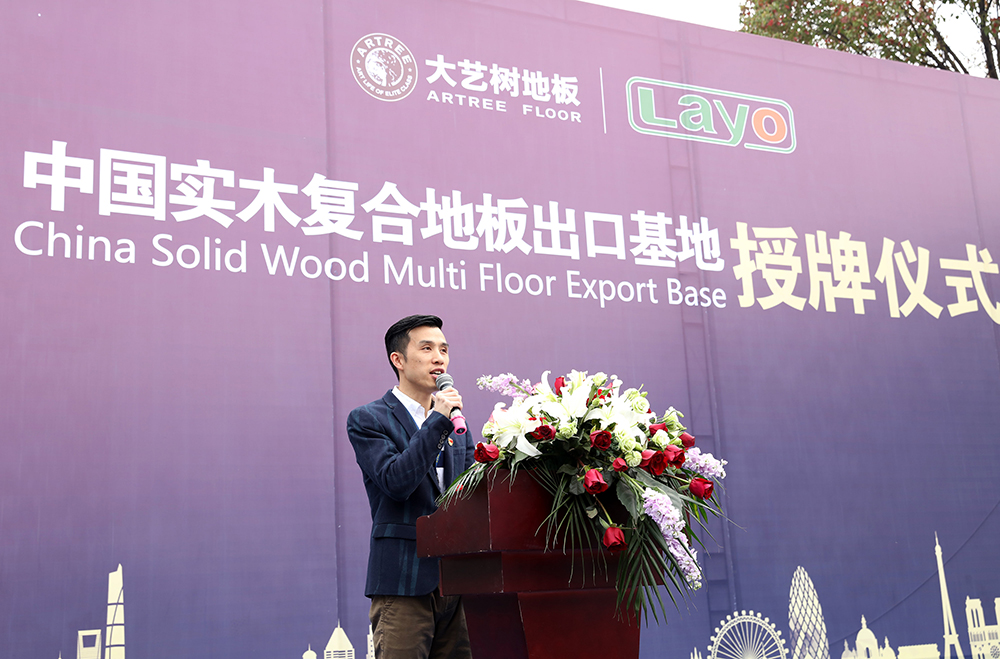 浙江良友木业总经理刘振江首先代表企业欢迎了到场嘉宾,并感谢了中国木材与木制品流通协会在授牌认证过程中给予的支持。在致辞中他介绍道:作为目前在国际市场上享有极高声誉的地板品牌,大艺树在实木复合地板领域有着深厚的产业基础和优异的出口成绩。