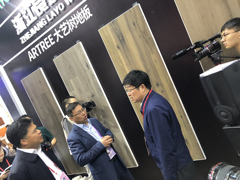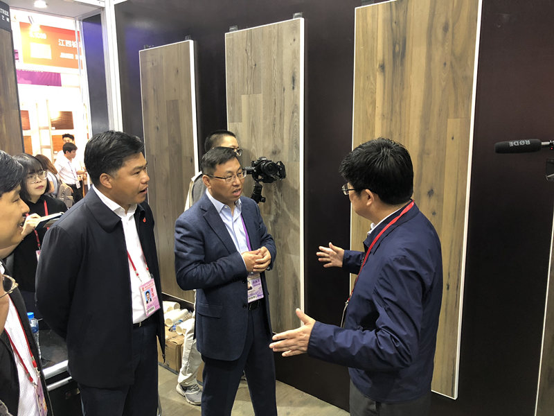 调研中,浙江省副省长朱从玖等一行领导与浙江良友木业、大艺树地板总经理刘振江先生展开深入沟通,朱从玖副省长询问了展品特色、客户来访与成交情况;刘振江总经理向朱省长一行介绍了产品出口情况、公司发展特点及参展情况,着重汇报了公司在应对中美贸易摩擦和品牌建设方面采取的一系列举措和取得的显著成效。