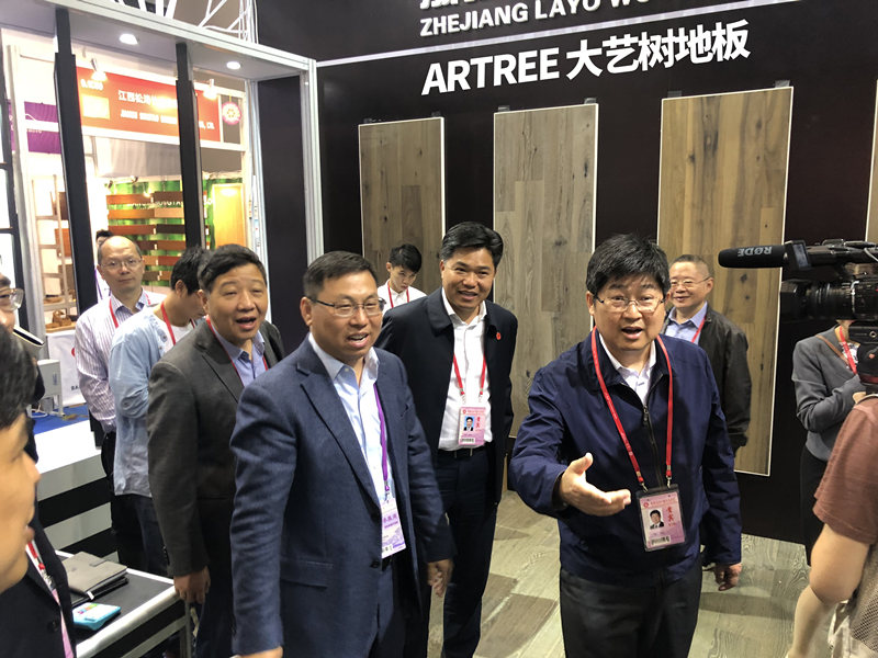 2019年4月16日,浙江省副省长朱从玖一行莅临浙江良友木业/大艺树地板广交会展位现场调研,浙江省商务厅厅长盛秋平、浙江省商务厅副厅长韩杰等领导陪同调研。