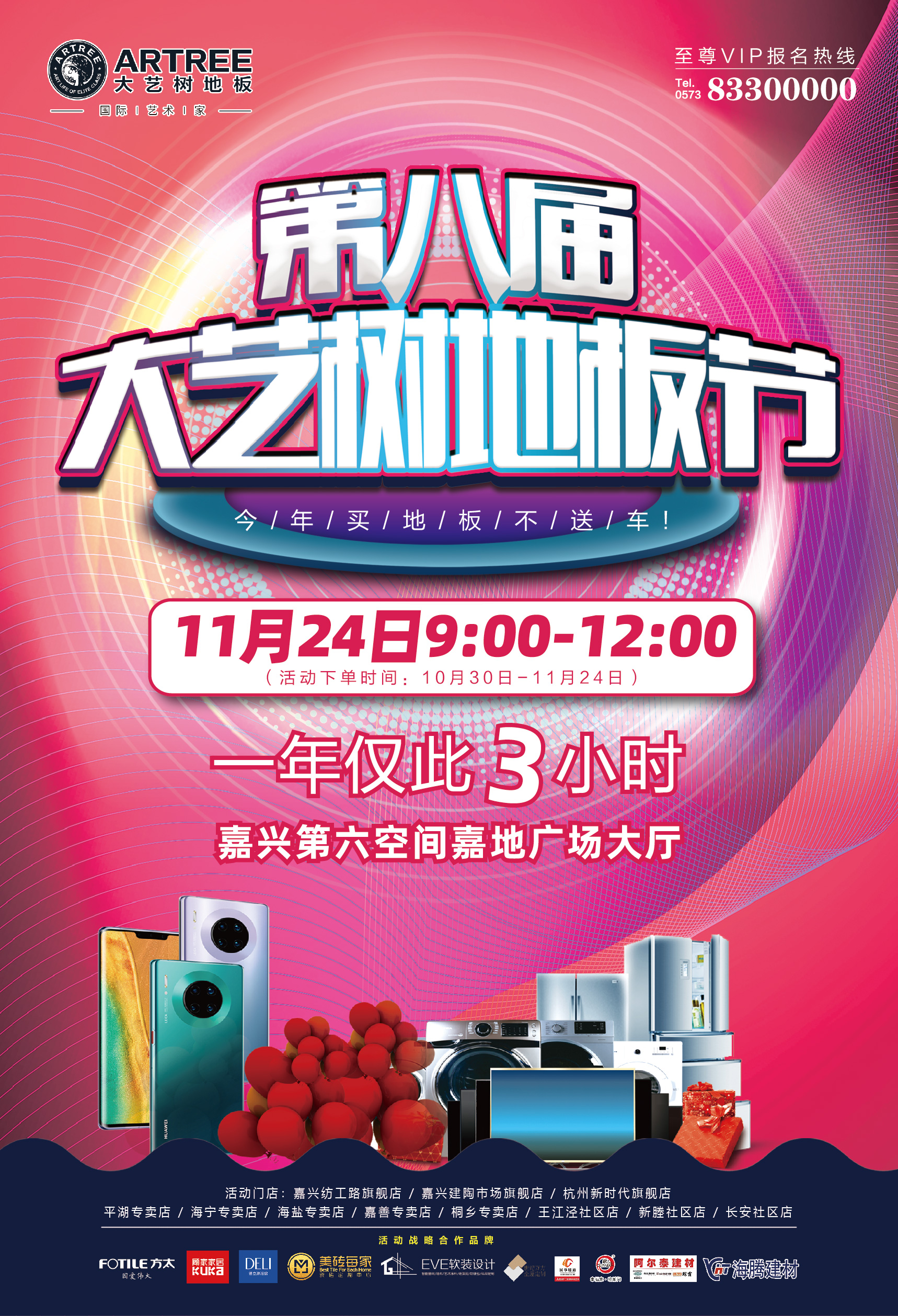 据悉,截至24日,第八季大艺树地板节暨1124全国联动大促活动已圆满完成预期目标,且在原有目标的基础上更胜一筹,再续辉煌。目前,嘉兴地区的落地活动已圆满结束,至本月底,全国各地也将陆续收尾。