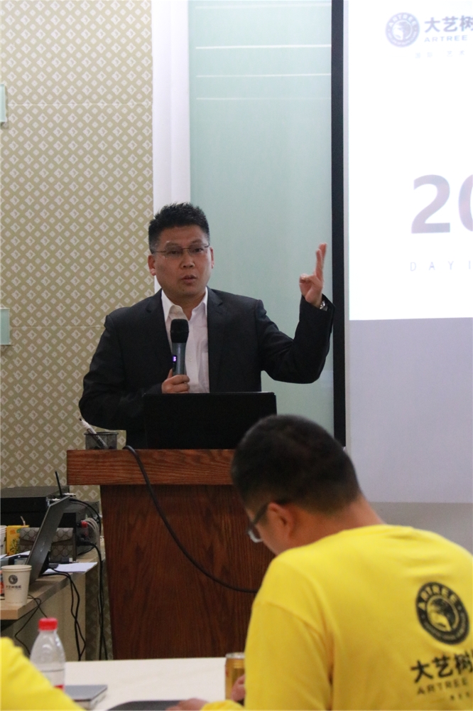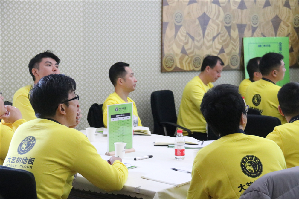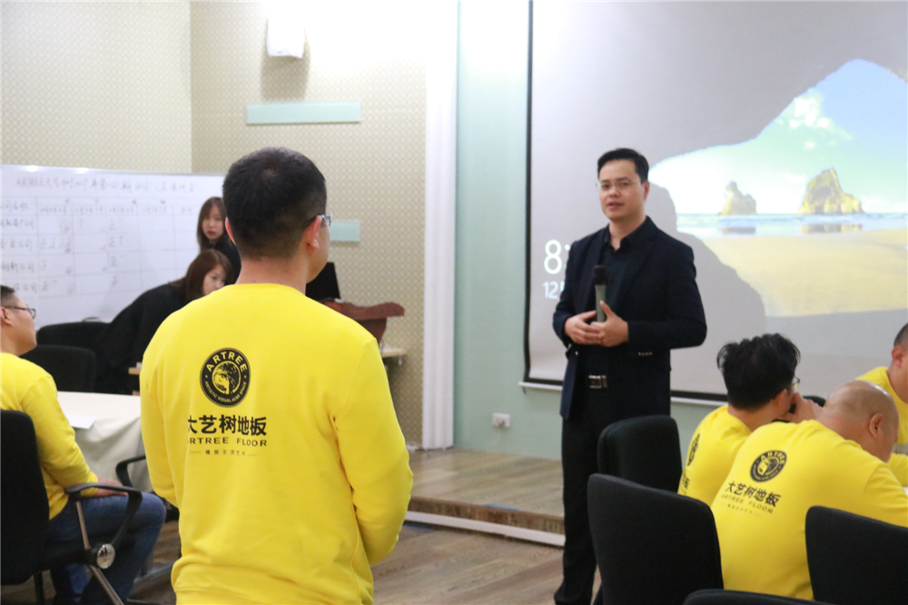 大艺树地板总经理徐华勇先生,大艺树地板副总经理周军波先生、袁福堂先生、陈庆女士、王润华先生出席会议,与销售团队共聚一堂。