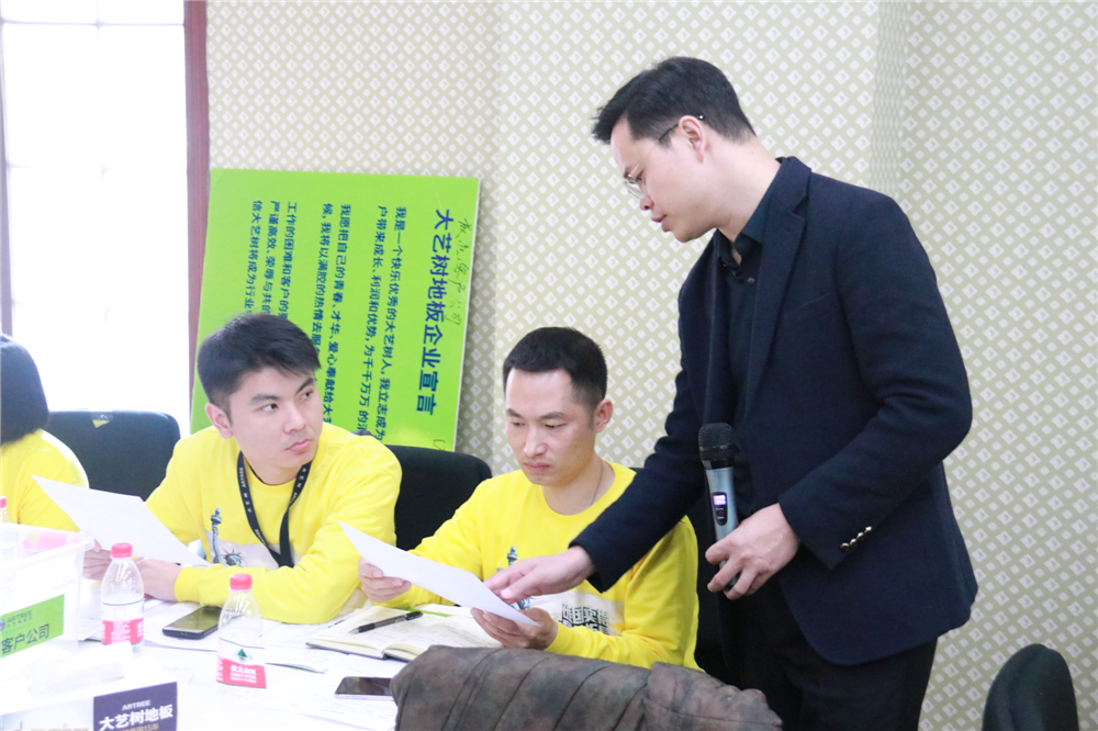 此次培训重点内容之二,是针对此前的T6项目进行回顾与总结。大艺树地板业务人员参与其中,与特聘讲师胡剑炬老师展开对话。
