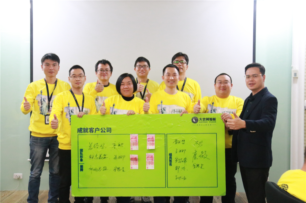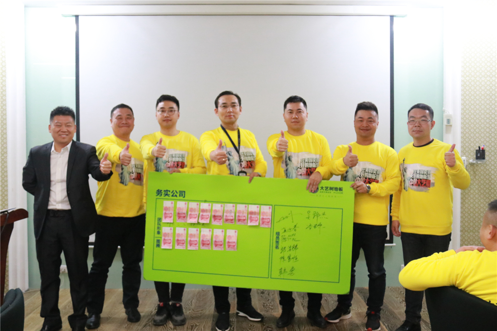 两天的课程很快结束了,有培训就有考核。最终,经过一系列的通关测试,“务实”组凭借出色表现荣获冠军,“成就客户”组位居第二,为本次培训画上了圆满的句号。同时,也评选出了在本次活动中表现积极,成绩优异的个人,由大艺树地板副总经理周军波先生颁发了奖品。