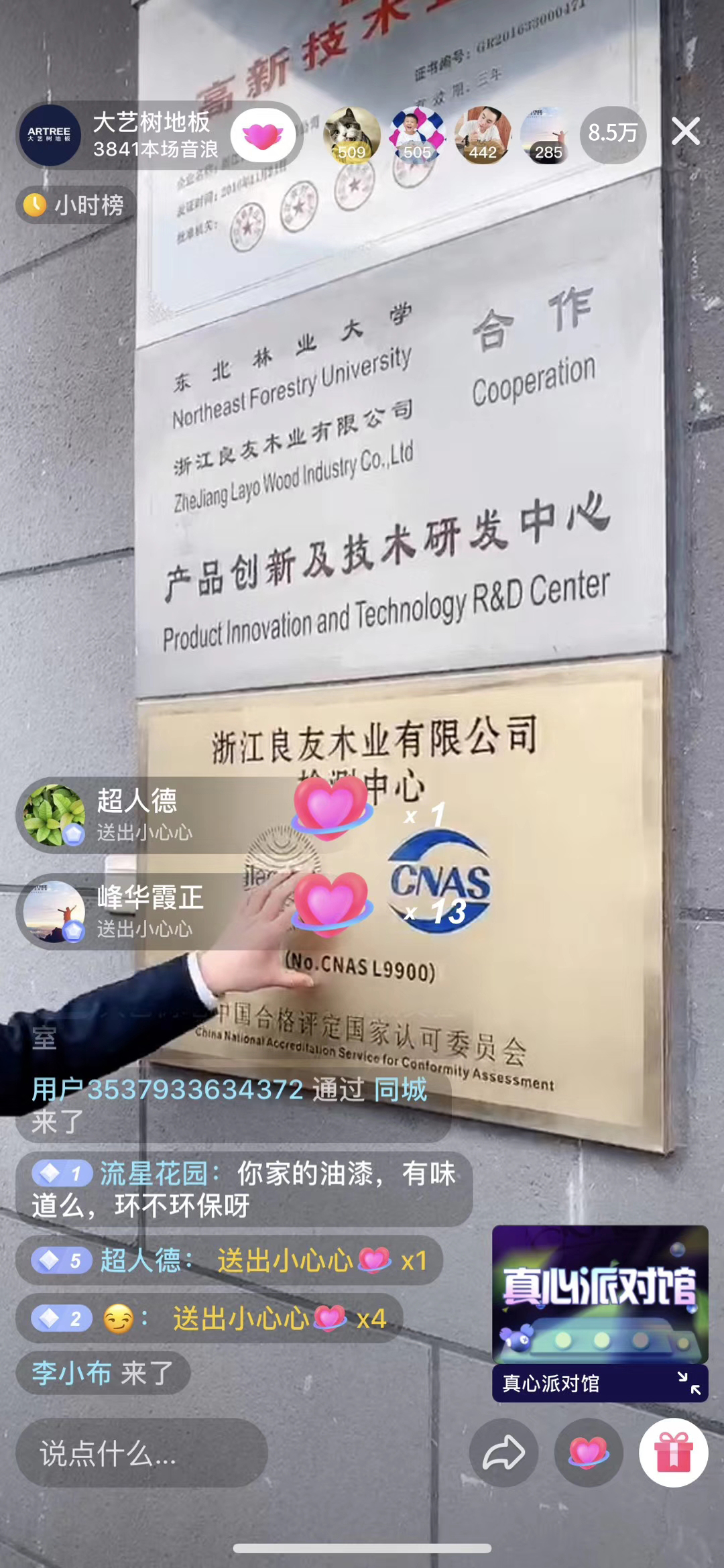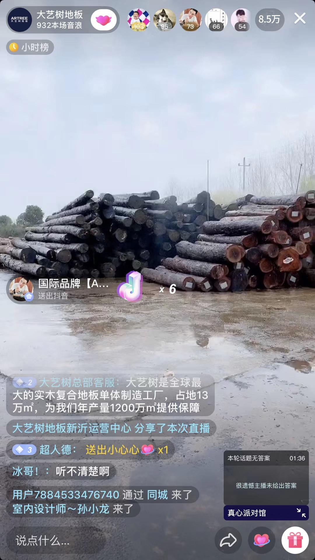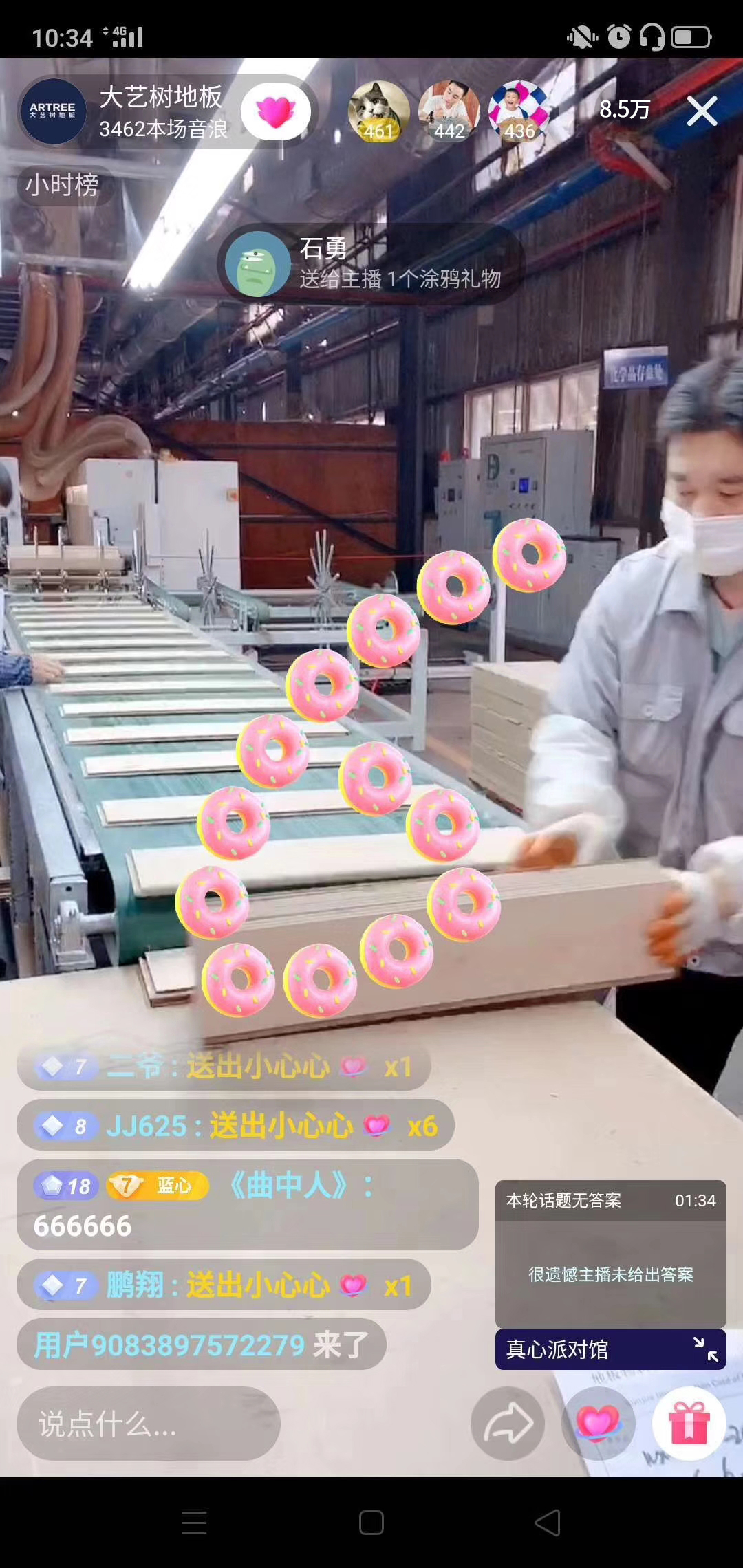 线上云直播,参观全球最大的实木多层地板生产基地,对许多消费者来说也是头一回。直播还没开始,就有不少观众蹲守,跟着大艺树藤井老师“云逛街”的过程中,也不断有消费者对生产环节、工厂实力等内容提出问题,大艺树安排了专业的客服人员在线解答,礼物刷到“爆棚”。