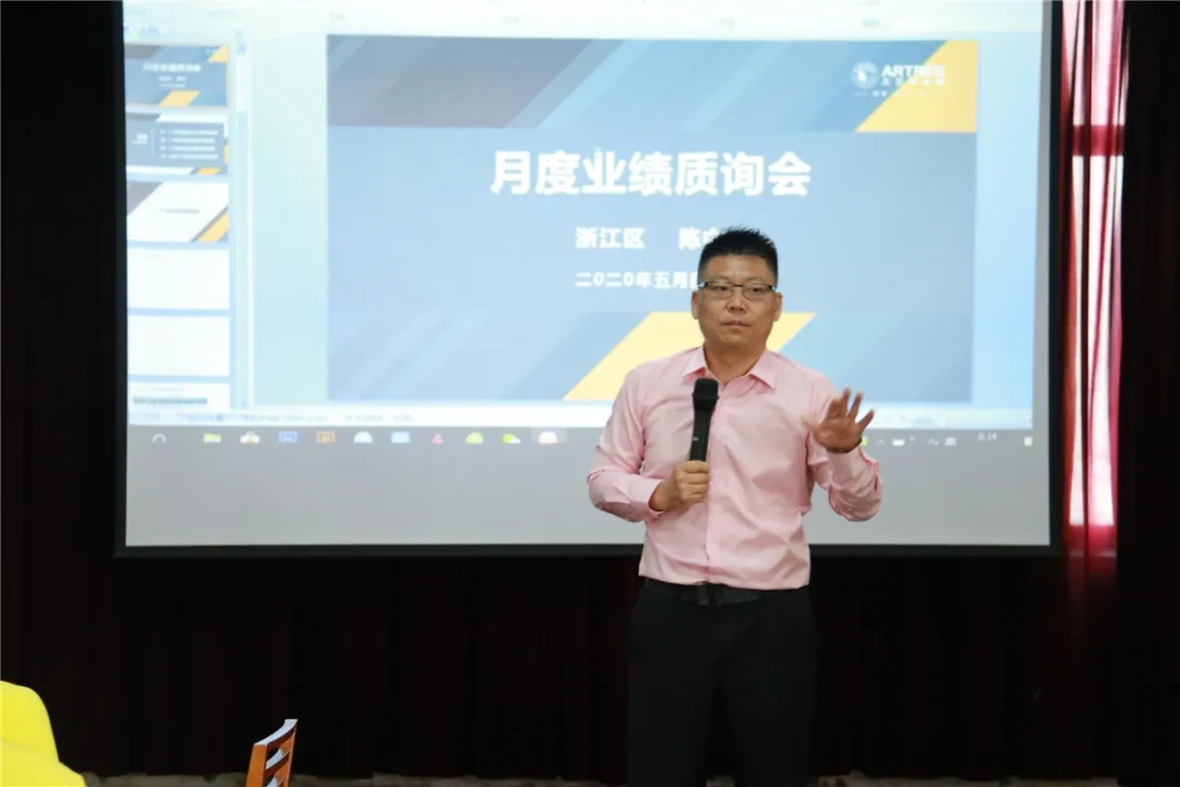 为对2020年一季度工作进行总结、从各方面发现问题,改进不足,同时明确下半年的工作重点,为各项工作奠定基础,我们于会议第一天展开了2020年一季度业绩质询工作。大艺树地板副总经理周军波先生,及各大区负责人参与本次会议。