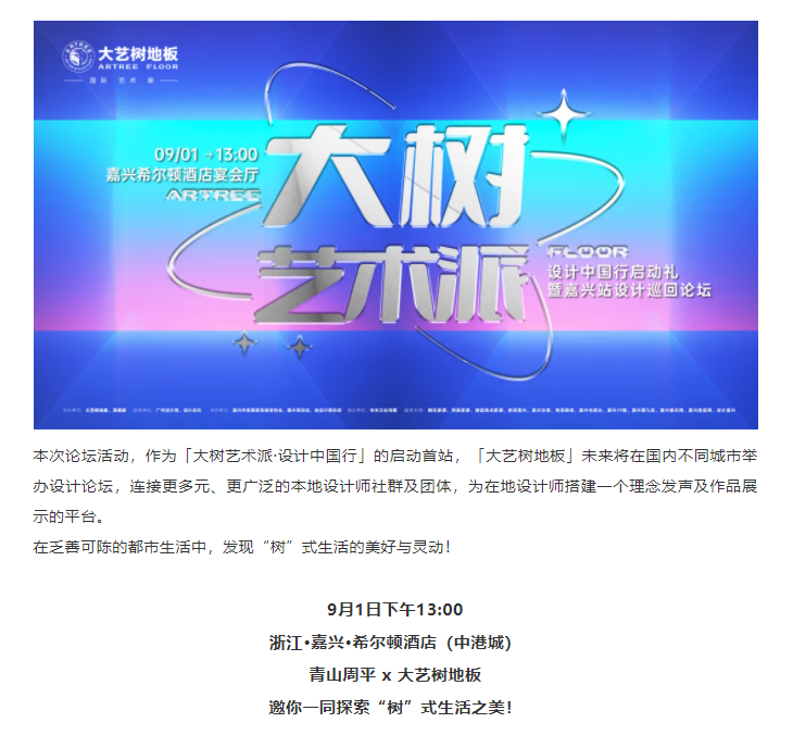 重磅预告 | 青山周平×大艺树地板,开启“树”式生活更多可能
