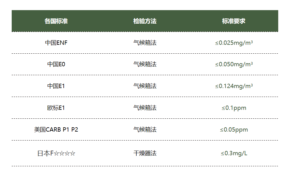 在GB/T 39600-2021《人造板及其制品甲醛释放量分级》中,将室内芯材甲醛释放量按照限量值分为 E1、E0、ENF(无醛添加)三个级别,目前国标最高的是ENF级。(ENF(≤0.025mg/m³))