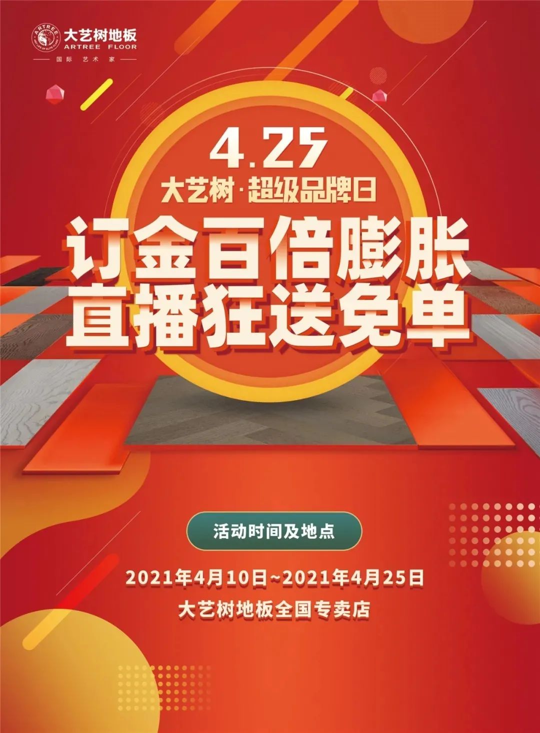 10月29日,大艺树第十届地板节正式启动,气象万千新风貌,全员奋起业绩红!23天的时间里,全国数百个店面根据总部指令规范执行,为用户带来全新的地板选购体验,成为2021年最精彩的一场品牌促销活动。