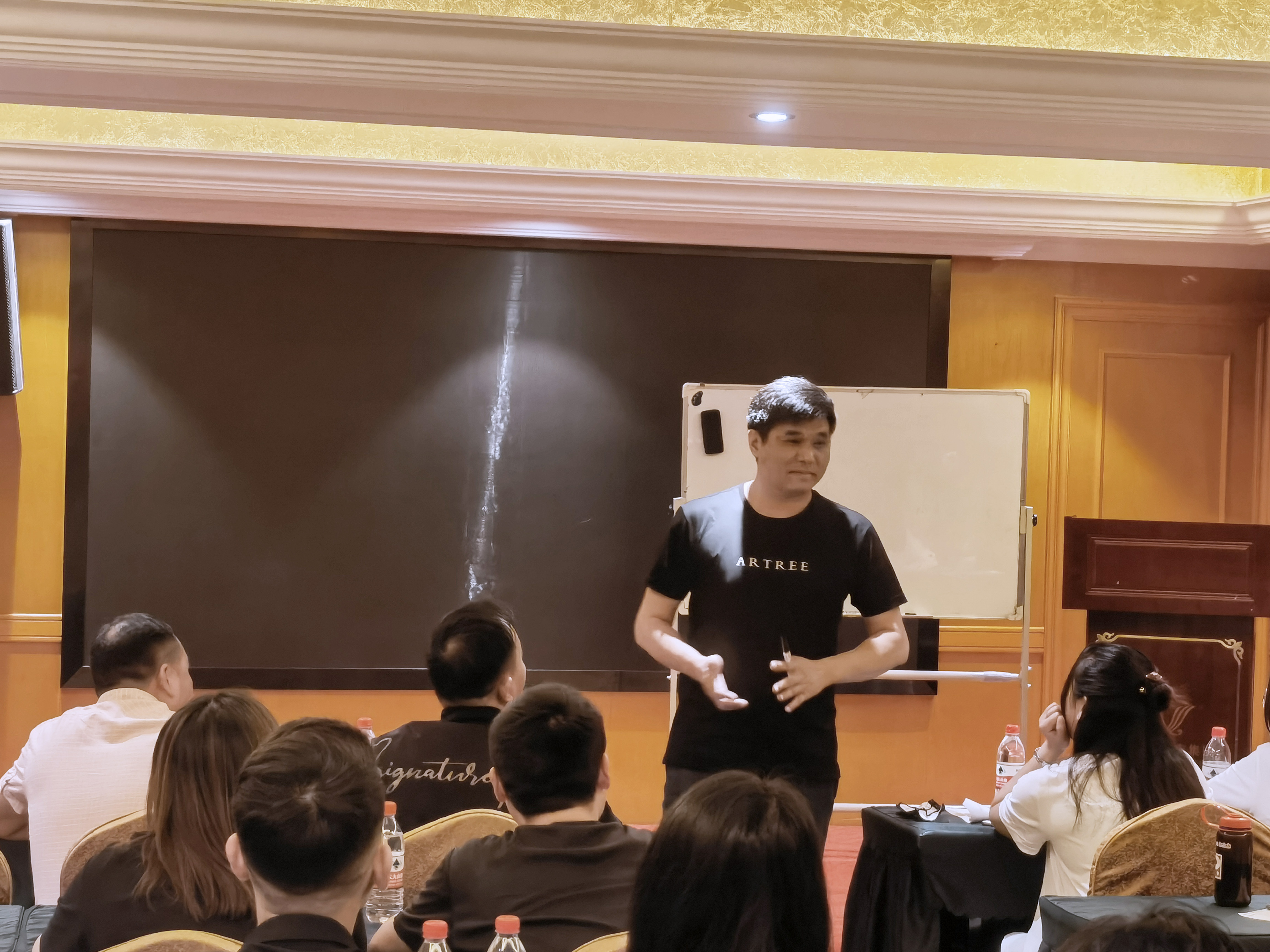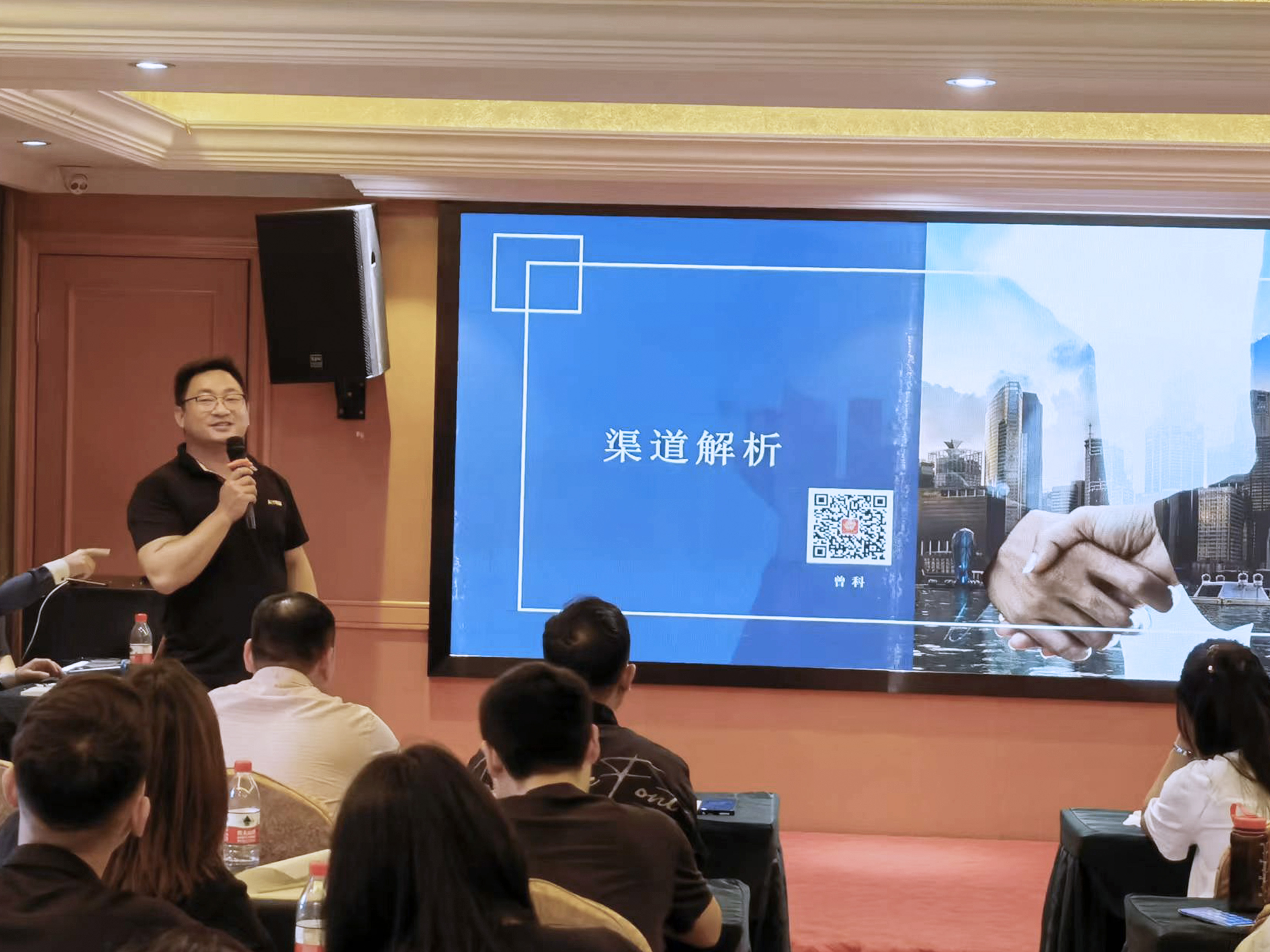 大艺树地板湖南运营平台渠道总监曾科以《渠道开发与维护》为主题进行讲解,从客户渠道分析、社群渠道开发等方面展开授课,内容多样,形式新奇,给各地经销商提供了更多市场拓展的新思路和新方法。