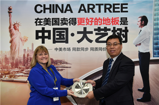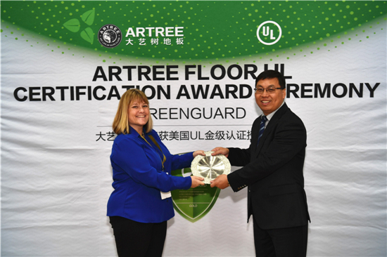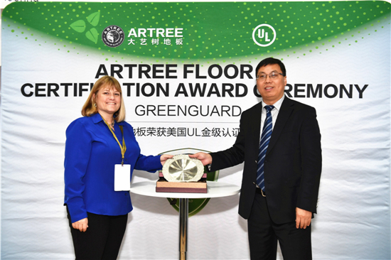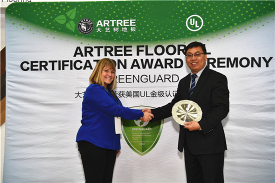 展会期间,权威环保认证机构UL公司为大艺树地板颁发了“GREENGUARD (绿色卫士)环保金质奖章”。这也正式标志着代表中国制造的大艺树地板达到了国际室内空气质量标准。