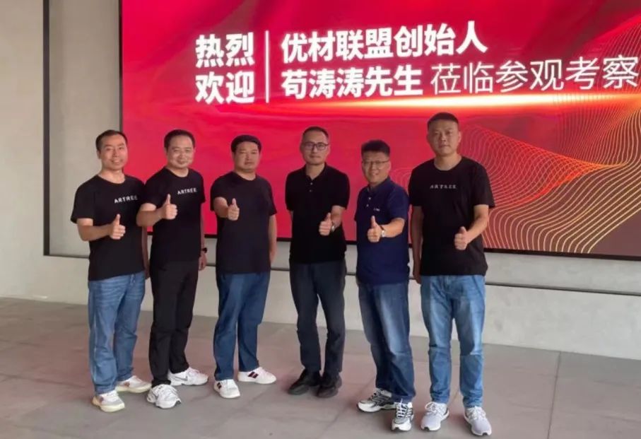 苟涛涛先生在参观了大艺树嘉兴总部工厂和展厅后,与大艺树地板副总经理周军波畅谈家装材料和装企行业发展,双方就资源互动达成了高度一致。这次来访促进了大艺树与优材联盟之间的合作,也为大艺树在渠道布局上扩展了新的通路。