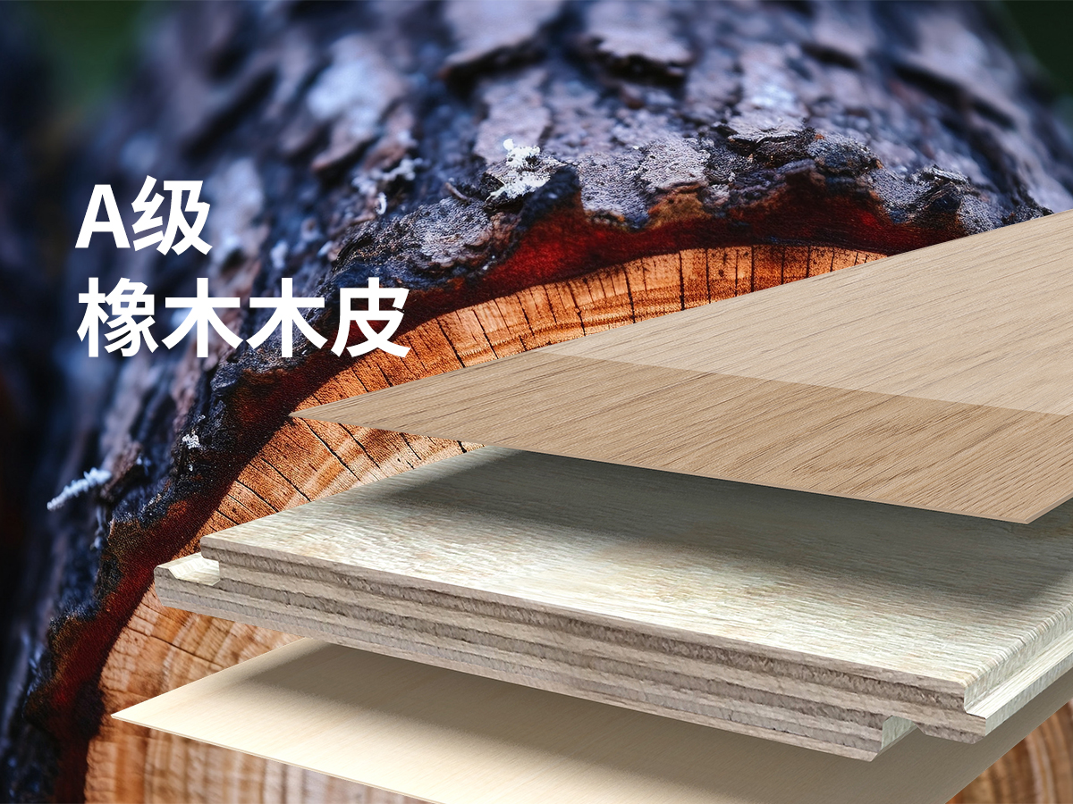 在板面上,大胆保留了原木细微的色彩变化,最大限度地将原木自然风貌留存下来,表面还采用仅头发丝深度的流云砂工艺,顺延木纹肌理形成细微的凹凸触感。色彩、材质、肌理,浑然一体,视觉柔和明快,触感丰盈舒适,一触便心生欢喜,从感官到心灵,人与自然互动融合。
