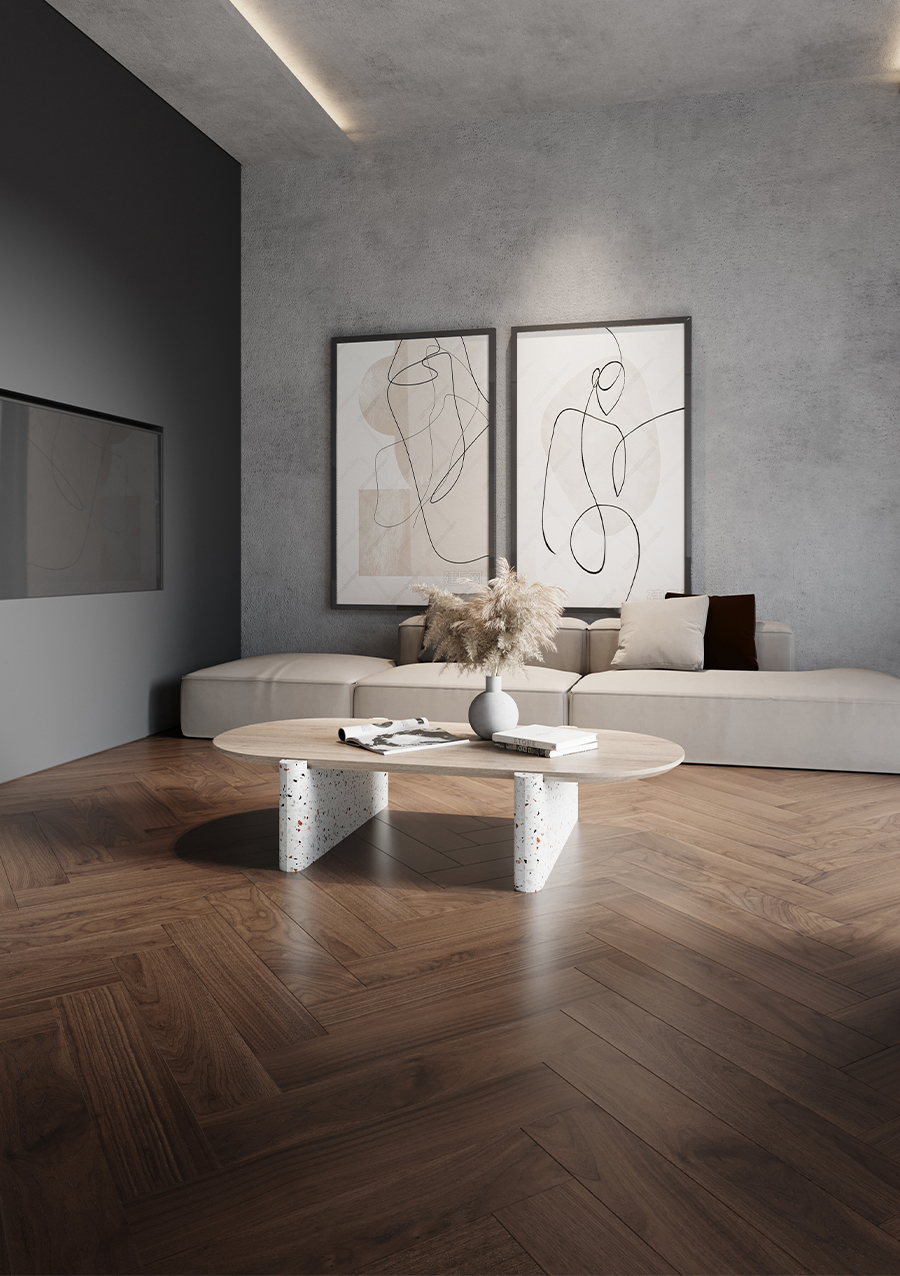丰盈的纹理无论地板怎么拼,都有其独特的美感。工字拼的独到之处就是简单大方,给人端庄有序的对称秩序感;人字拼和鱼骨拼则显得更为灵动,极具个性及线条美,同时在视觉上起到延伸空间的效果。